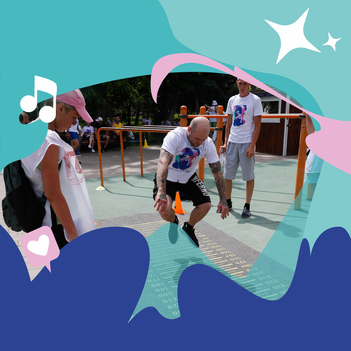 Маршрут эстафеты состоит из челночного бега, прыжков в длину с места, синхронных подниманий туловища из положения лежа на спине, подтягиваний, отжиманий, рывков гири и приседаний с отягощением.